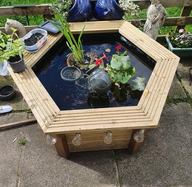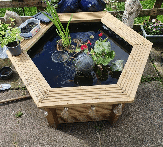 Our wooden patio pond transformed the backyard into a peaceful retreat—pure joy every day.